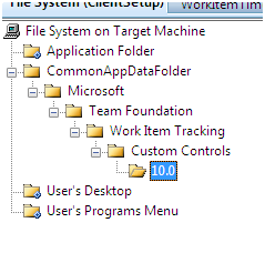 - Create the folder structure shown in the screenshot above under the CommonAppDataFolder. (Microsoft, Team Foundation, Work Item Tracking, Custom Controls, 10.0)
